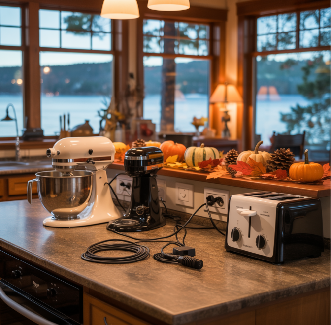 Thanksgiving in Lake Arrowhead is magical. Picture-perfect snow might dust the pines, family gathers around the fireplace, and the smell of roasting turkey fills your mountain cabin. But while you're focused on perfecting your grandmother's stuffing recipe, your home's electrical system is working overtime—and that can spell trouble if you're not prepared. Every Thanksgiving, emergency electricians across the country respond to preventable electrical fires, power outages, and safety hazards. In mountain communities like Lake Arrowhead, Blue Jay, Crestline, and Running Springs, the combination of older homes, high power demands, and winter weather creates the perfect storm for electrical problems. Let's make sure your holiday stays safe and your lights stay on. Why Thanksgiving Is Peak Season for Electrical Problems Thanksgiving puts more demand on your home's electrical system than almost any other day of the year. Here's what your circuits are dealing with: Kitchen Appliance Overload: Your oven, stovetop, microwave, coffee maker, slow cooker, electric mixer, and possibly an extra refrigerator or freezer are all running simultaneously. Most kitchen circuits are designed for normal daily use—not holiday cooking marathons. Temperature Control Challenges: Lake Arrowhead temperatures can dip below freezing on Thanksgiving. Your heating system, space heaters, and electric blankets add significant load while you're already maxing out kitchen circuits. Extra Guests, Extra Devices: More people means more phone chargers, laptops, hair dryers, curling irons, and other personal devices plugged in throughout your home. Holiday Lighting: If you've already started decorating for the season, outdoor lights and indoor displays add even more electrical demand. The result? Overloaded circuits, tripped breakers, blown fuses, or worse—electrical fires that can destroy your holiday and your home. The Turkey Fryer Danger Zone Turkey fryers have become increasingly popular, but they come with serious electrical considerations if you're using an electric model. Electric turkey fryers draw enormous amounts of power—typically 1,500 to 1,800 watts. That's equivalent to running a space heater while cooking your holiday meal. Many Lake Arrowhead homes, especially older cabins, have 15-amp kitchen circuits that can't safely handle a turkey fryer plus your other cooking appliances. Never plug a turkey fryer into an extension cord. This creates a fire hazard and can damage the appliance. If you must use an electric turkey fryer, plug it directly into a dedicated 20-amp circuit, preferably outdoors on a GFCI-protected outlet. Better yet? Stick with a propane turkey fryer used outside, away from your deck and any flammable materials. They're faster, more flavorful, and won't compete with your kitchen appliances for power. Kitchen Circuit Safety for Holiday Cooking Your Thanksgiving cooking setup requires strategic planning to avoid overloading circuits and tripping breakers at the worst possible moment—like when your turkey is halfway cooked. Spread the Load Across Multiple Circuits: Don't plug your slow cooker, electric roaster, coffee maker, and microwave into outlets on the same circuit. Most kitchens have at least two 20-amp circuits. Identify which outlets are on which circuit by testing with a circuit finder or by process of elimination with your breaker panel. Know Your High-Draw Appliances: Your oven and range typically run on a dedicated 240-volt circuit and won't interfere with countertop appliances. But your microwave (1,000-1,500 watts), coffee maker (800-1,200 watts), and toaster (800-1,500 watts) can max out a 20-amp circuit when running together. Use Appliances in Shifts: Can't avoid overloading? Stagger your cooking. Run the coffee maker before guests arrive, then unplug it before starting the microwave. Reheat dishes one at a time rather than simultaneously. Watch for Warning Signs: If lights dim when you turn on an appliance, outlets feel warm to the touch, or you smell burning plastic, you're overloading the circuit. Redistribute your appliances immediately. Mountain homes in Lake Arrowhead often have older electrical panels that weren't designed for modern cooking demands. If you're constantly resetting breakers during meal prep, it might be time for an electrical panel upgrade—something to consider for next year's holidays. Space Heater Safety in Mountain Homes Thanksgiving in Lake Arrowhead means chilly mornings and the temptation to warm up every room for arriving guests. Space heaters are convenient, but they're also one of the leading causes of electrical fires in mountain communities. One Space Heater Per Circuit: Space heaters typically draw 1,500 watts—the maximum safe load for a standard 15-amp circuit. Never plug a space heater into a power strip, extension cord, or outlet that's already serving other devices. Avoid Daisy-Chaining: We see this constantly in older Lake Arrowhead cabins: multiple space heaters plugged into power strips or extension cords to reach distant rooms. This is extremely dangerous and causes house fires every winter. Keep Heaters Away from Flammables: Space heaters should be at least three feet away from curtains, furniture, bedding, and holiday decorations. In smaller cabins where space is limited, consider investing in wall-mounted electric heating instead. Turn Off When Leaving: Never leave space heaters running unattended, especially in guest rooms or when cooking in another area of your home. Modern space heaters have tip-over and overheat protection, but older models often don't. If you're relying heavily on space heaters to keep your Lake Arrowhead home comfortable, your HVAC system might be inadequate or your insulation might need upgrading. A licensed electrician can also assess whether your home's wiring can safely support your heating needs. Generator Safety for Holiday Power Outages Thanksgiving storms can knock out power in Lake Arrowhead wit
